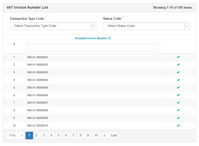 Contoh setelah pemilihan nomor VAT Invoice Number